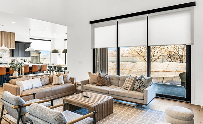 - Large: Use motorized shades to conveniently cover sizeable panes of glass while maintaining sharp lines and a modern look.